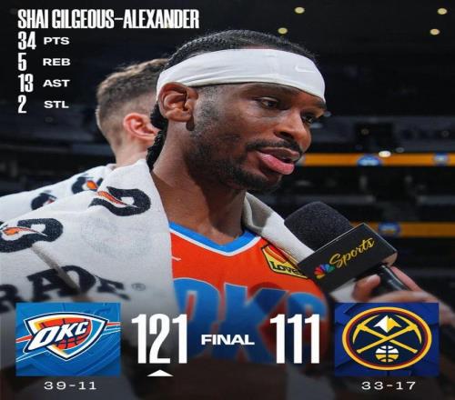 常规赛,雷霆客场121-111战胜掘金。